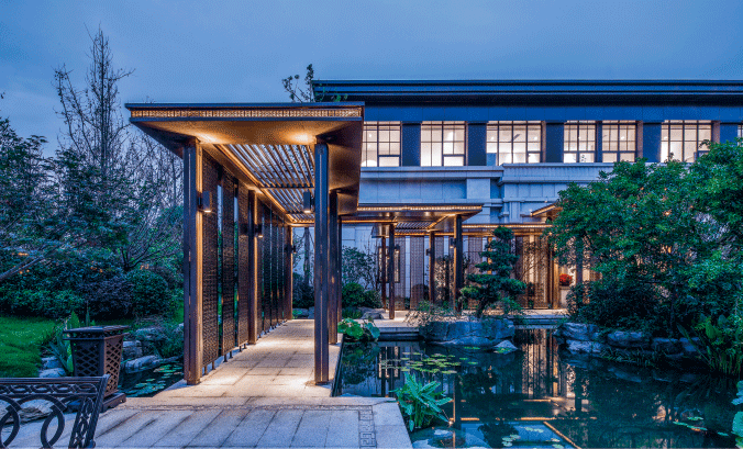 取《蘭亭集序》園林意境,完美融合東方美學和現代建筑手法,賦予項目深厚的文化氣質。