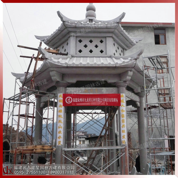 雙層石雕六角亭安裝