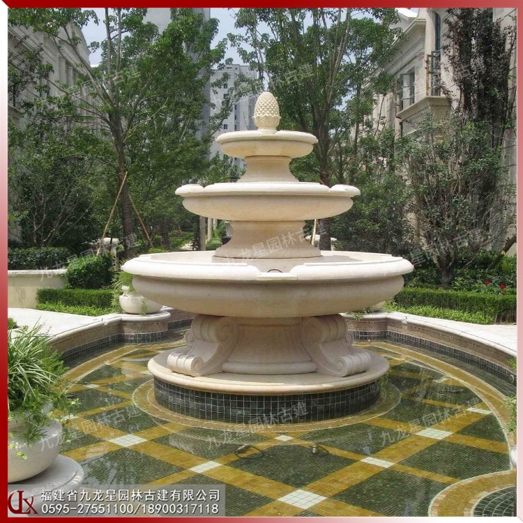 埃及米黃水缽噴泉 小區石材水缽實景圖 廠家爆款